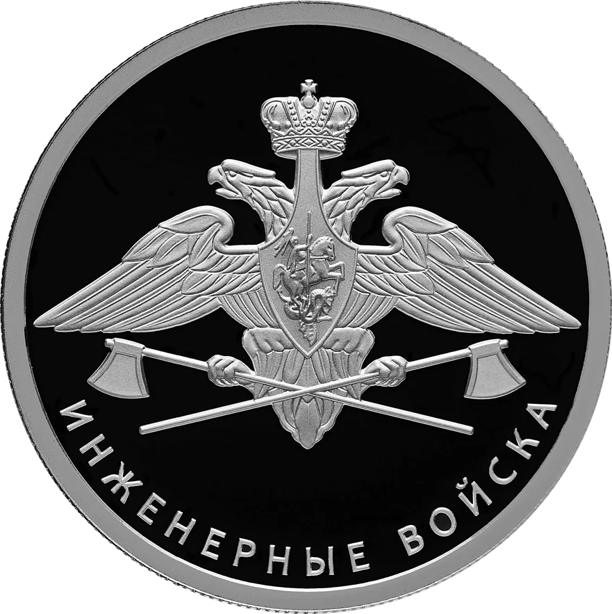 The disc's mirror field bears a relief of the Russian Engineering Corps emblem and the inscription "ИНЖЕНЕРНЫЕ ВОЙСКА" along the lower rim.
