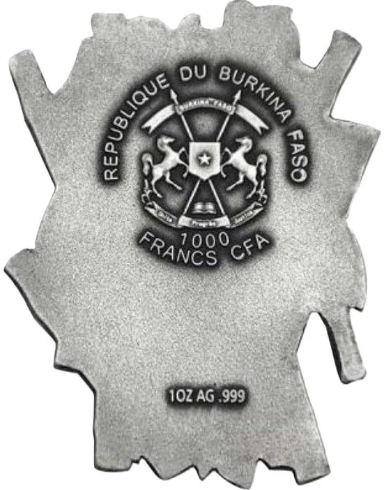 A shield flanked by stallions, topped by a banner and flanked by two spears.