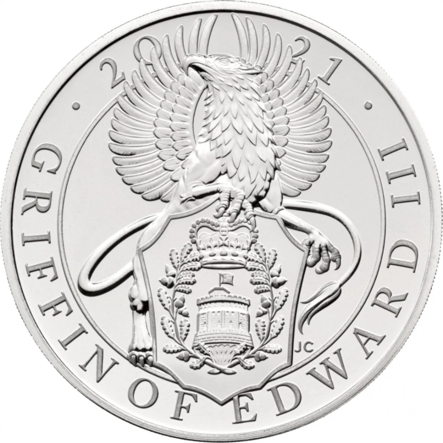 Griffin (lion-eagle hybrid) over Windsor shield, dividing date, with surrounding legend.