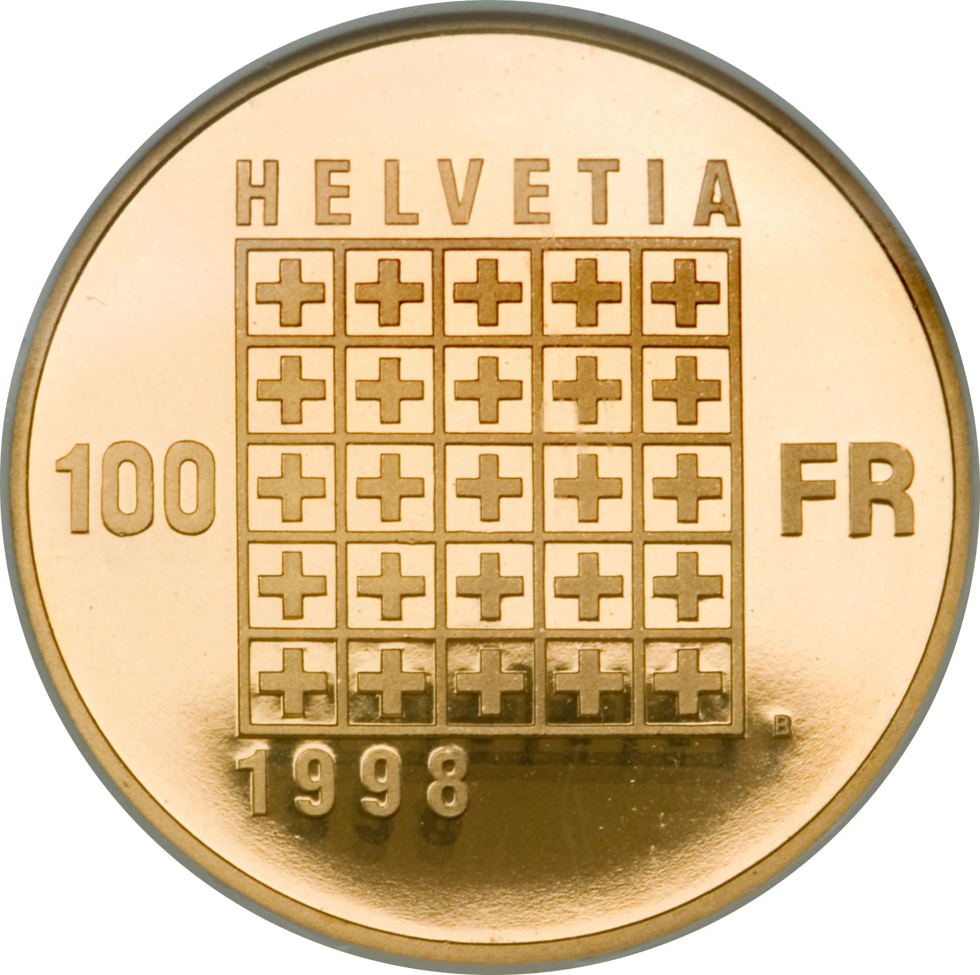 1798 Helvetic Republic 40 batzen coin obverse. Square frame with Swiss crosses on left and right.