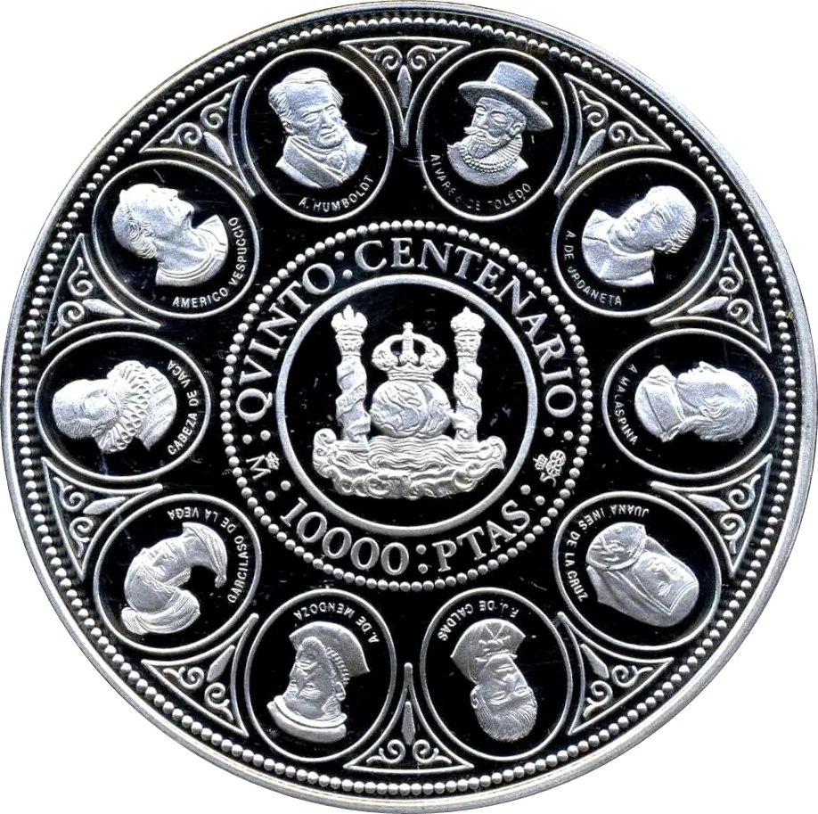 On the occasion of the five hundredth anniversary: 10,000 Marks: 500 Pesetas;