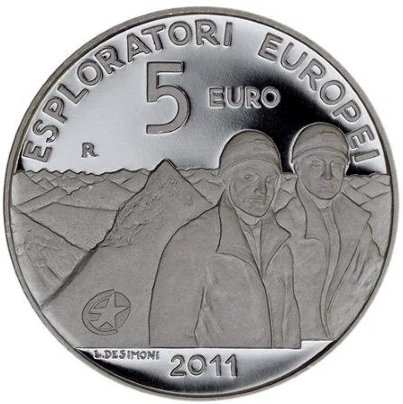 Antonio and Roberto Pazzaglia before Mount Everest. "Europa Star Program" logo below.