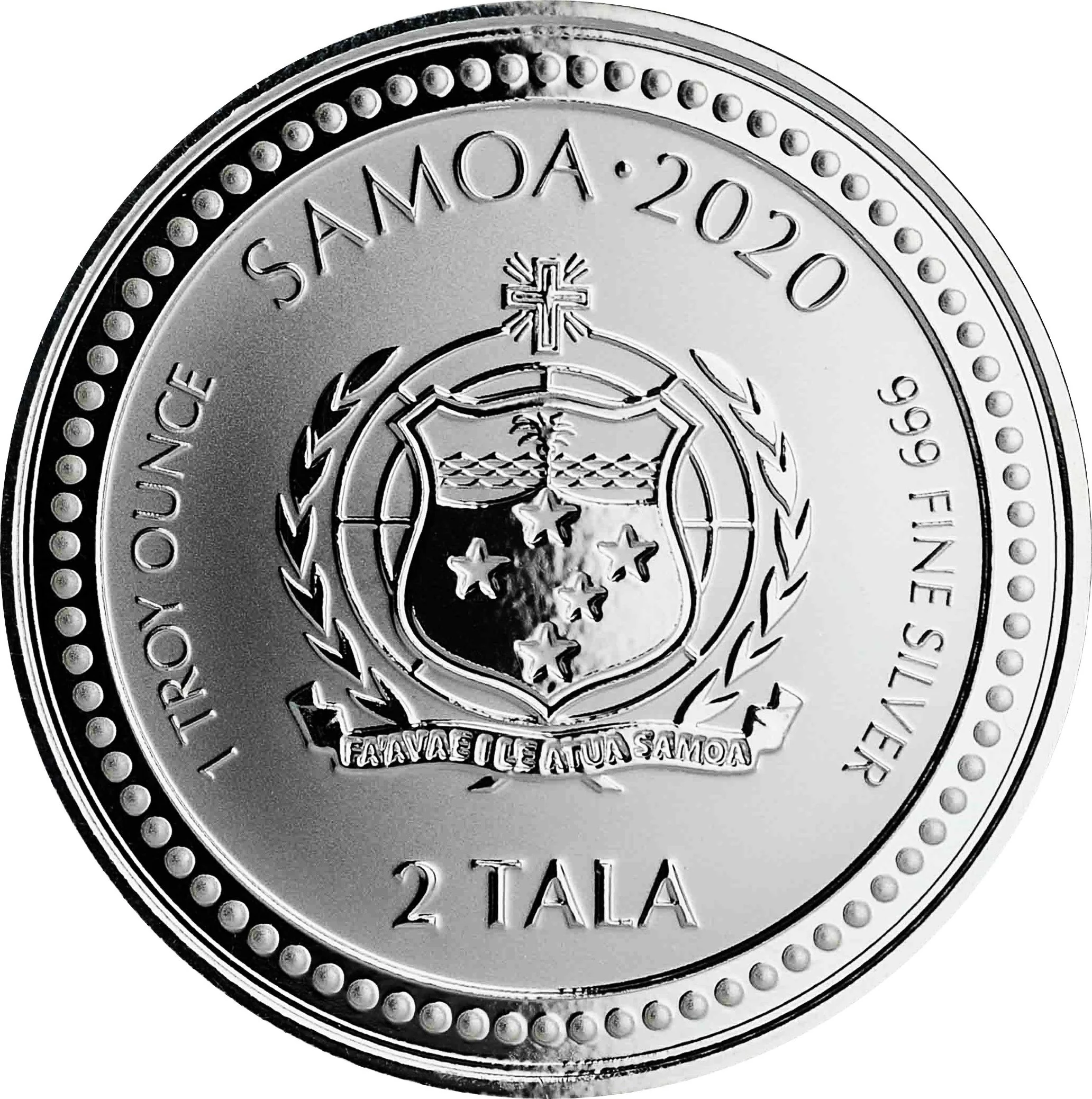 Inscription: 1 TROY OUNCE SAMOA·2020 999 FINE SILVER