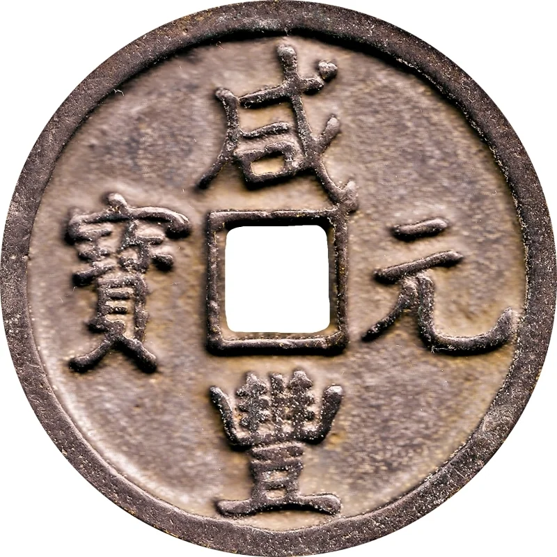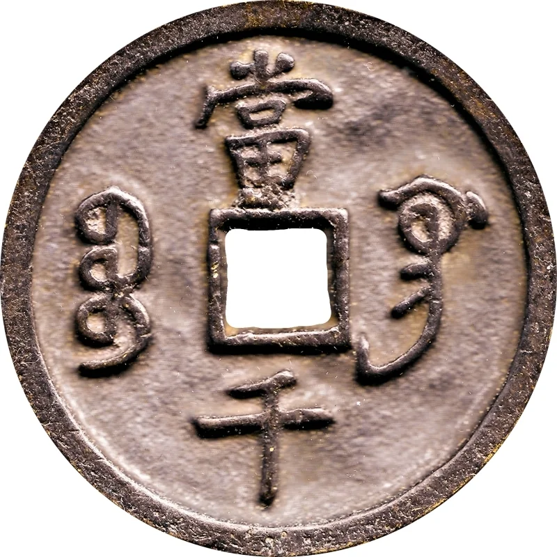 Description: Two Manchu words flank a central hole, each with a Chinese character above and below.