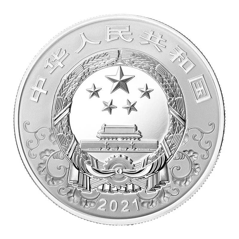 China's national emblem with auspicious patterns, country name, and issue year.