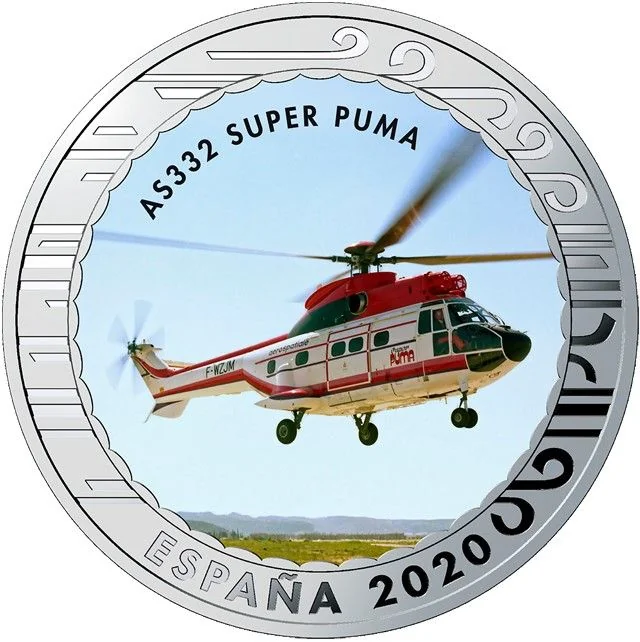 AS332 Super Puma with geometric cloud shapes in the outer ring.