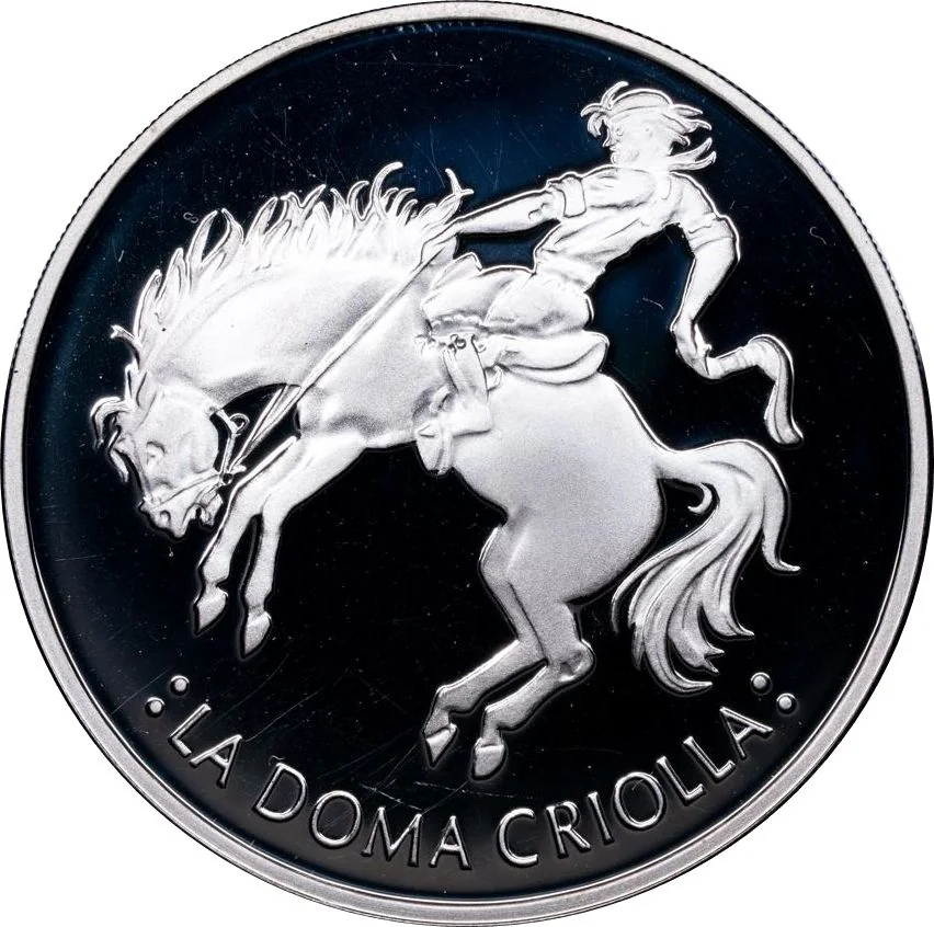 A gaucho taming a horse, encircled by the legend "LA DOMA CRIOLLA".