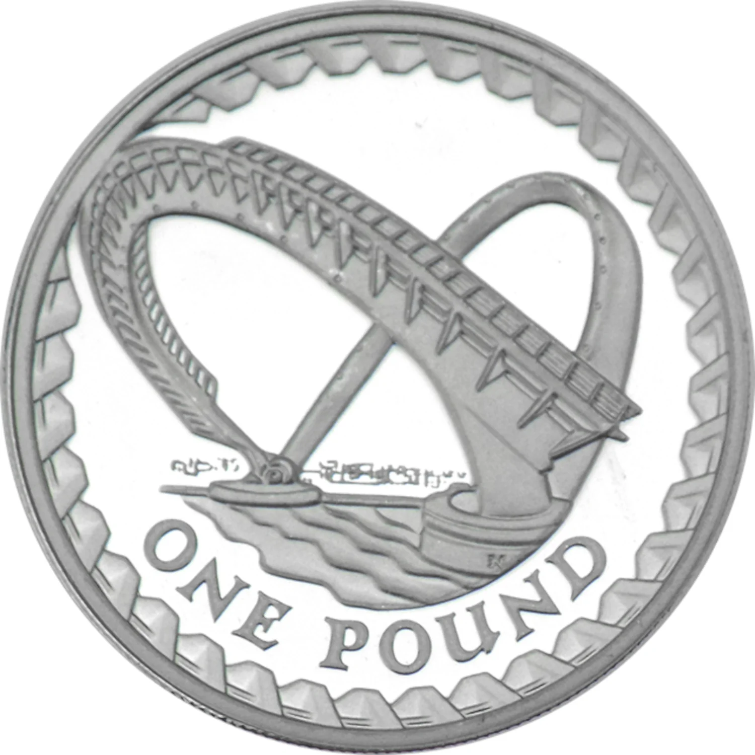 Gateshead Millennium Bridge, bordered by struts. Denomination below.