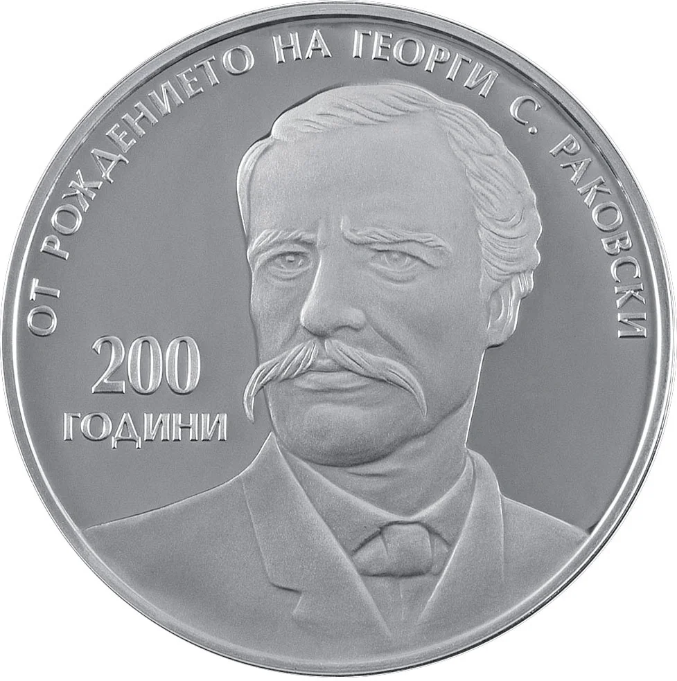 The reverse shows G. S. Rakovski, with "200 ГОДИНИ" on the left and "ОТ РОЖДЕНИЕТО НА ГЕОРГИ С. РАКОВСКИ" arched above.