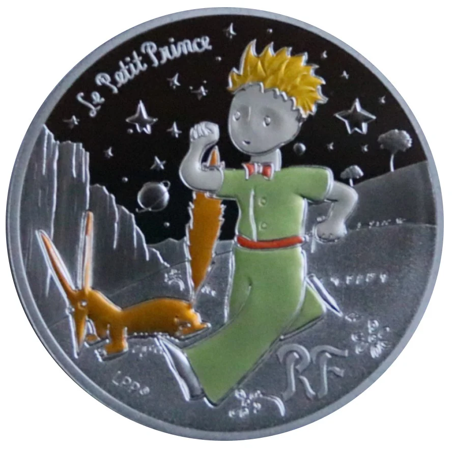 Logo des 75 ans du Petit Prince, avec le titre de l’ouvrage en français, anglais, allemand et japonais.