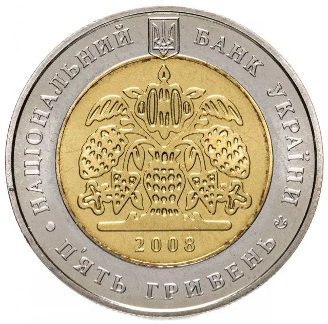 Inscription: НАЦІОНАЛЬНИЙ БАНК УКРАЇНИ – П’ЯТЬ ГРИВЕНЬ