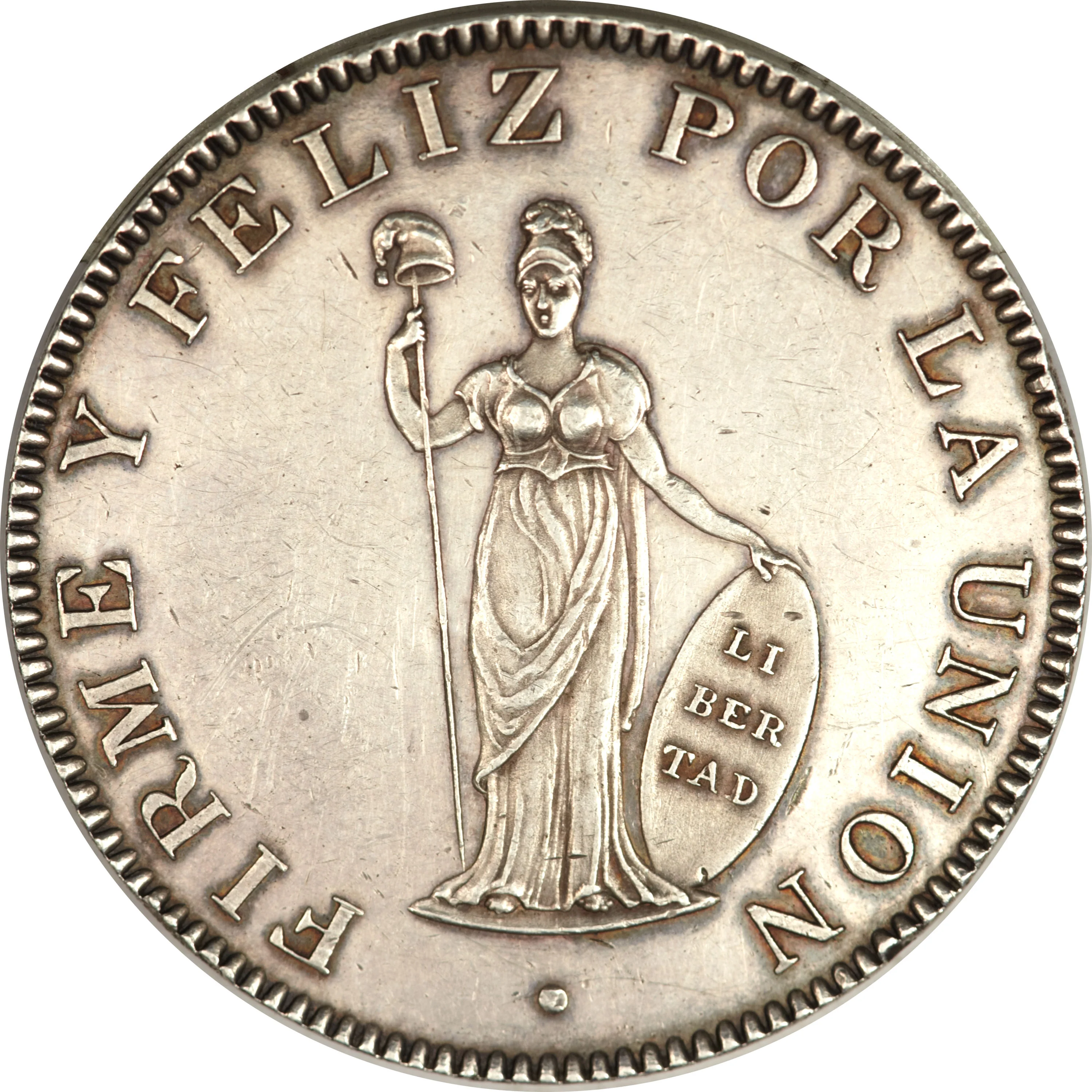 In 1825, Peru’s currency situation was chaotic and transitional, reflecting the turbulent aftermath of its independence from Spain in 1821. The new republic inherited a fragmented monetary system comprising a mix of Spanish colonial coins (like pesos, reales, and the gold escudo), coins from other former Spanish colonies, and even counterstamped or cut pieces used to make change. The wars of independence had severely disrupted mining, the traditional source of Peru’s silver wealth, leading to a scarcity of circulating specie. To finance the conflict, both royalist and patriot forces had issued vast quantities of low-quality debased coinage and paper money, which eroded public trust in the monetary system and caused significant inflation.