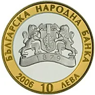 Description: The obverse shows the Bulgarian National Bank logo on a gilded ribbon dated 1879, encircled by "БЪЛГАРСКА НАРОДНА БАНКА," "10 ЛЕВА," and the issue year "2006."