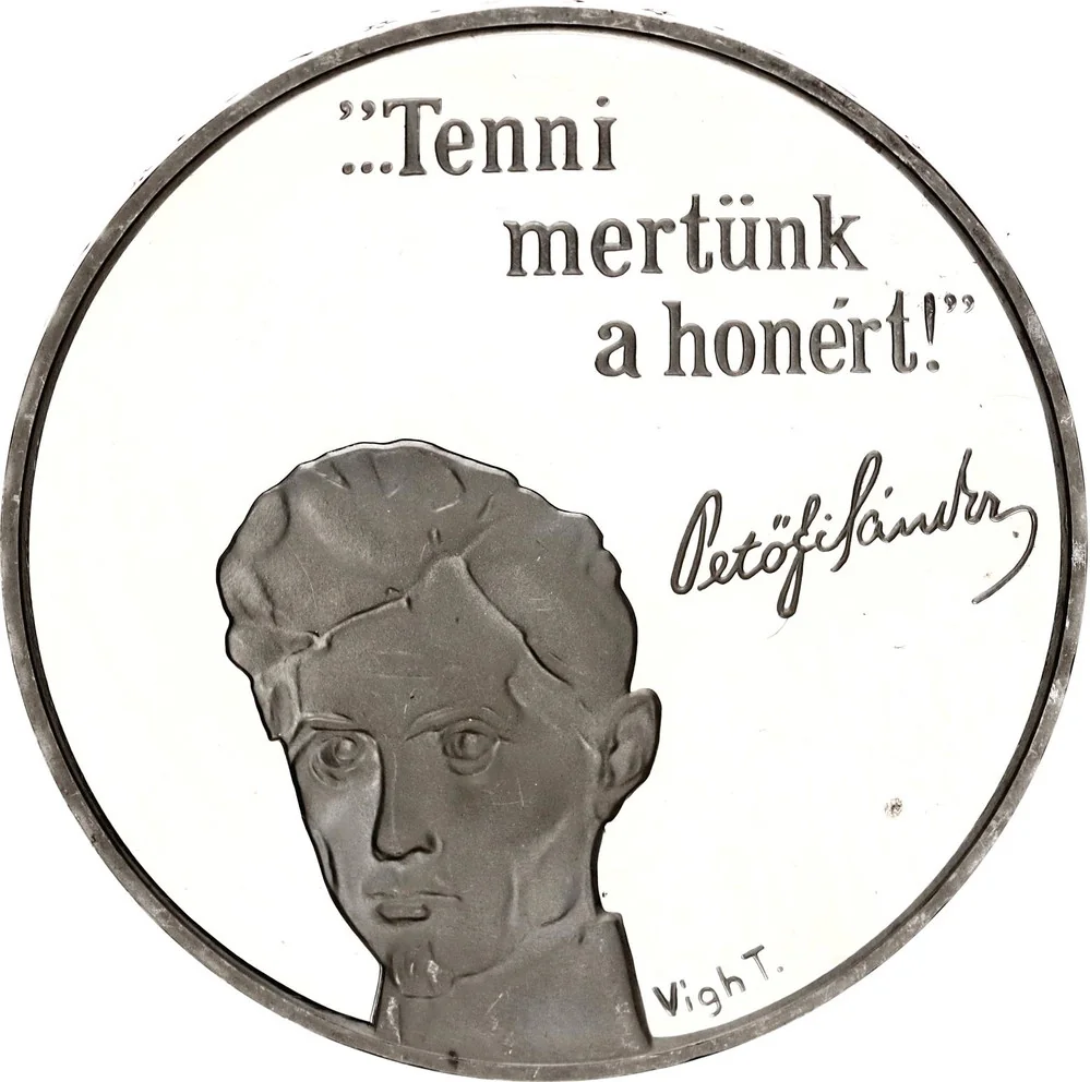 Sándor Petőfi (1823–1849) was a Hungarian poet and freedom fighter. His line "Tenni mertünk a honért" means "We dared to act for the nation."