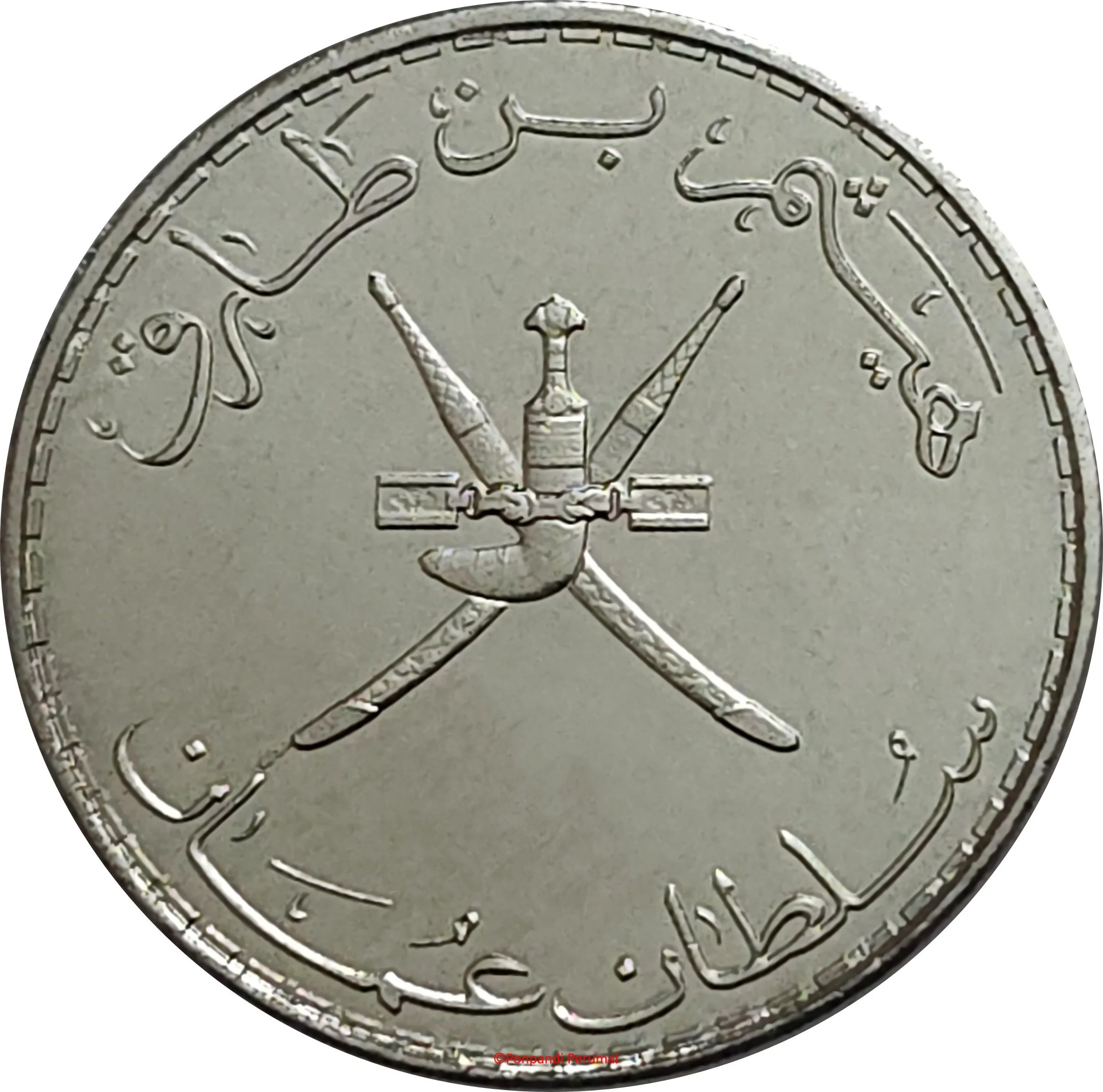 The Sultan's name above Oman's national emblem, with "Sultanate of Oman" below.