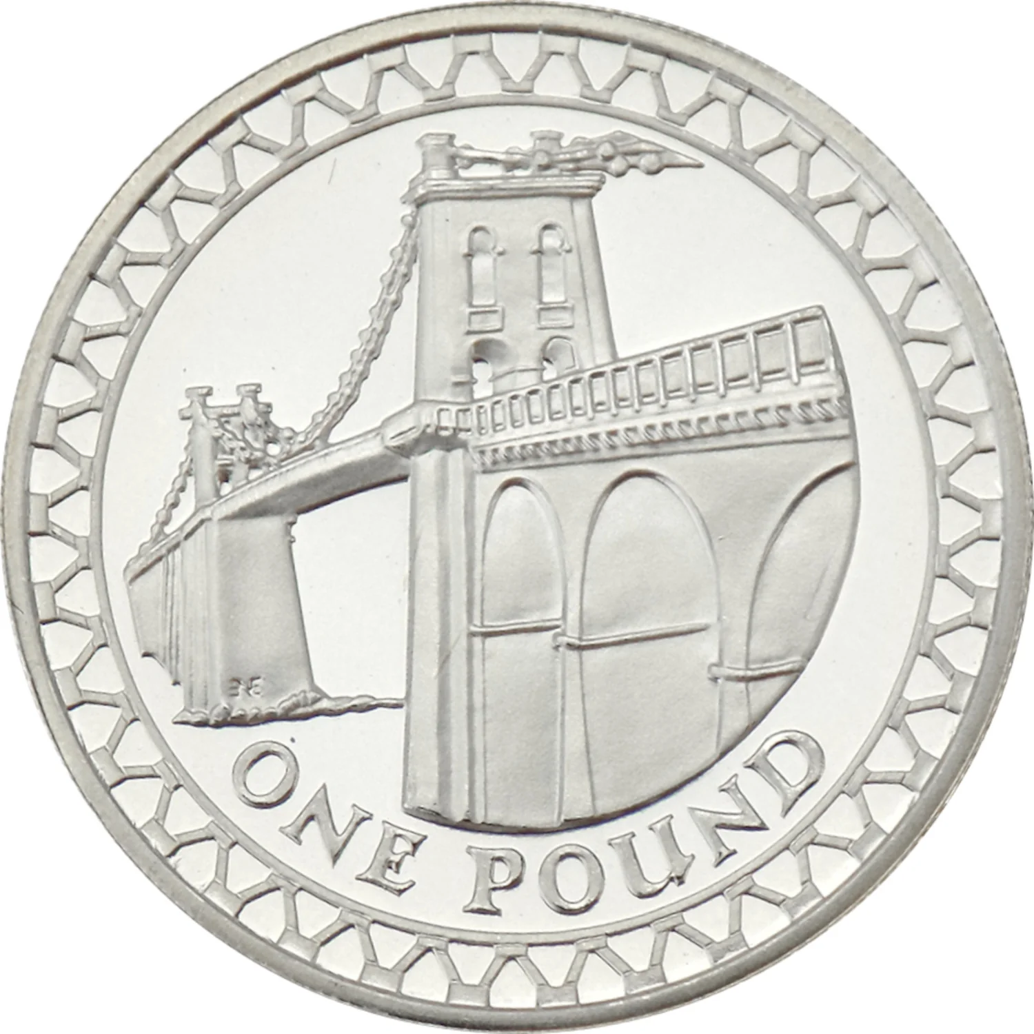 Milled with a decorative pattern symbolising bridges and pathways