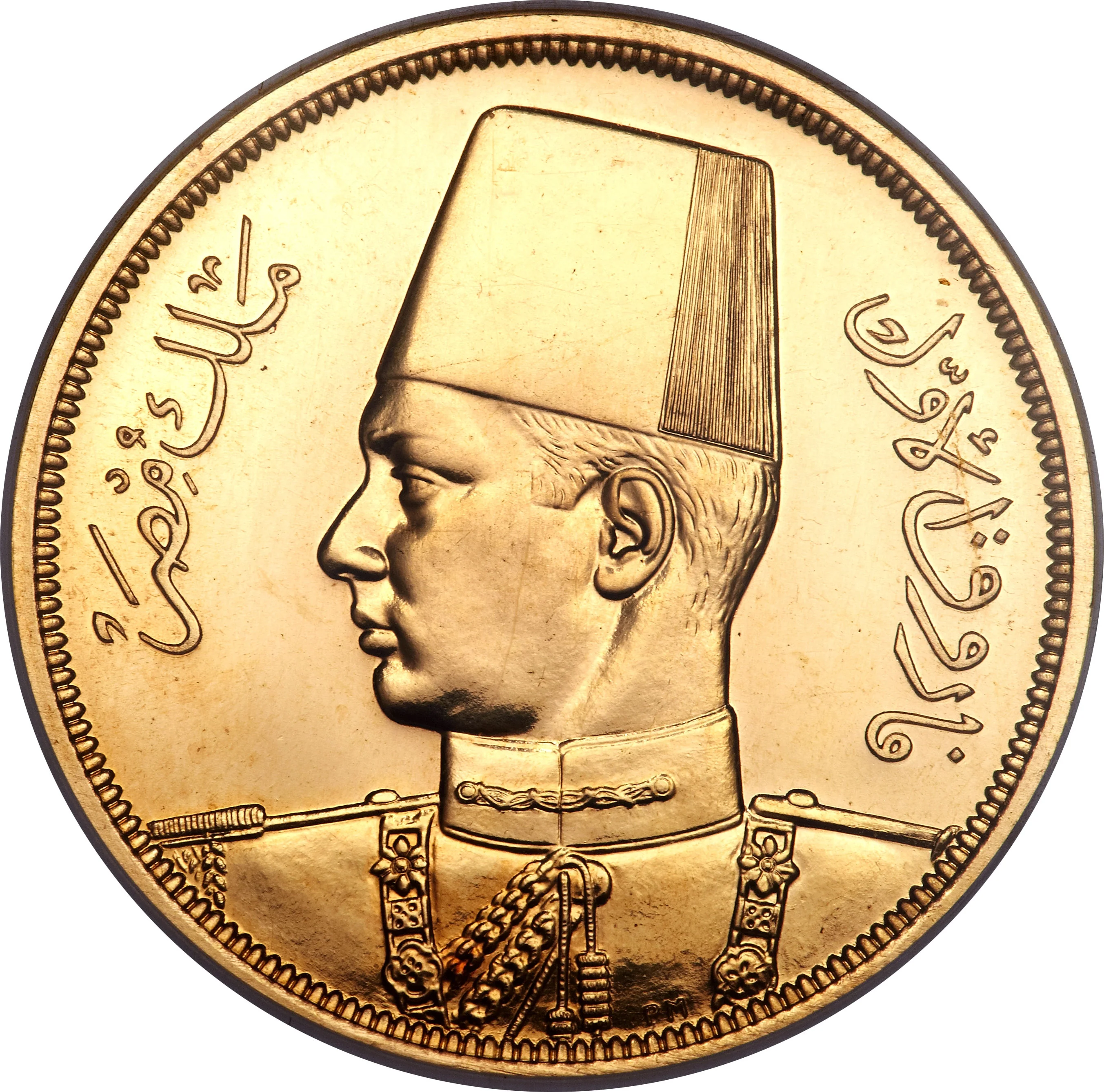 Portrait of King Farouk I, left.