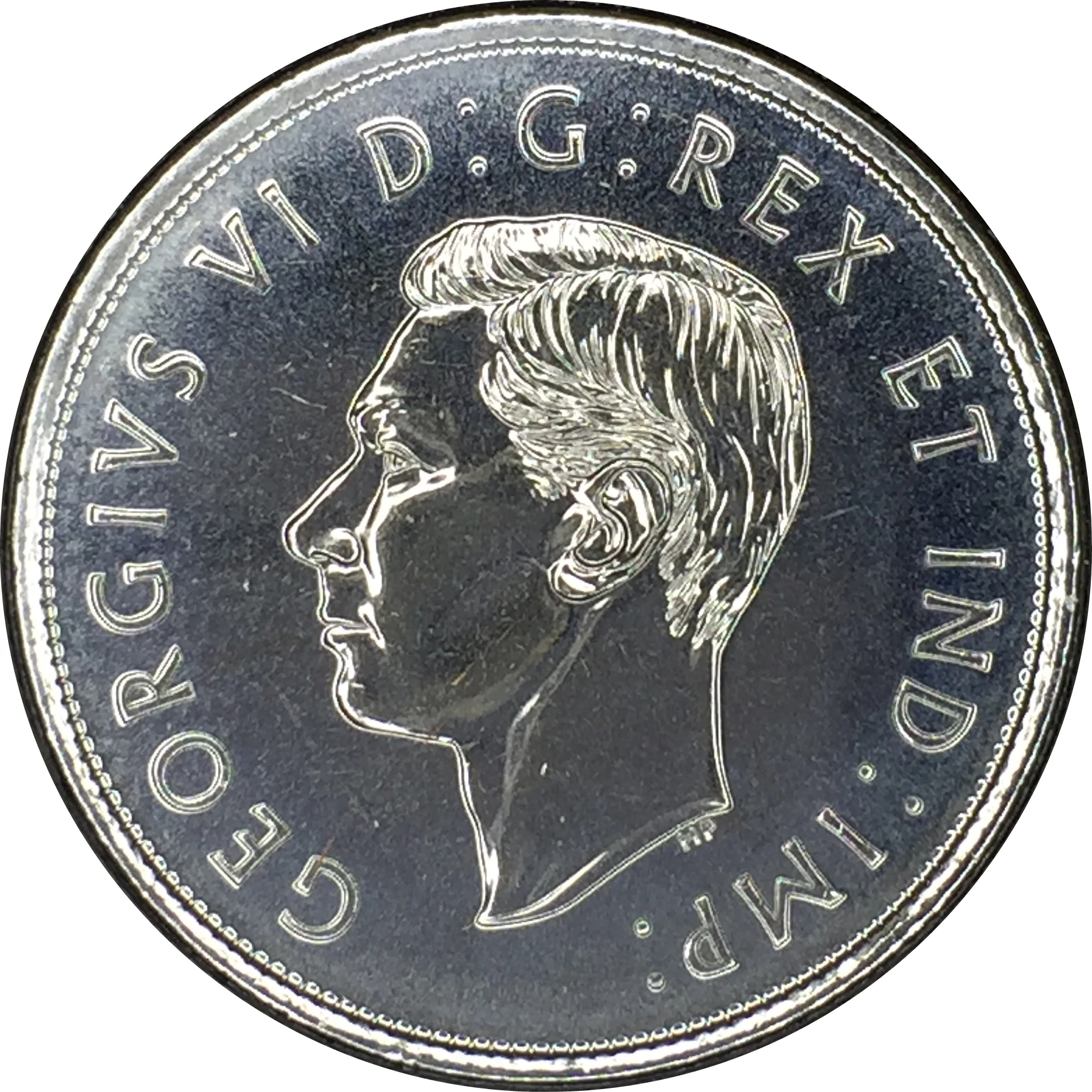 The 1937 Canadian coin design featured T.H. Paget's effigy of King George VI with the inscription "GEORGIVS VI:G:REX ET IND:IMP."