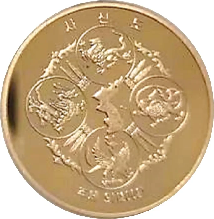 Korean cardinal directions map: Black Tortoise (North, winter), Azure Dragon (East, spring), Vermilion Bird (South, summer), White Tiger (West, autumn).