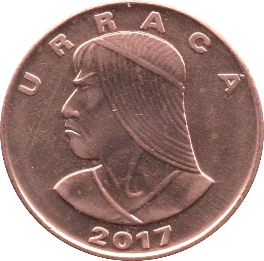 Head of Chief Urraca, who fought the Spanish in Panamá (1520–1531), facing left with date below.
