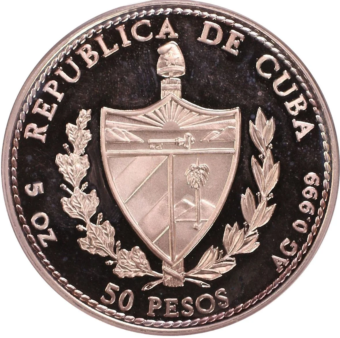 Description: Cuban coat of arms with country name above, face value below, and weight/fineness on sides. Identical design to KM# 597 with updated face value and weight.