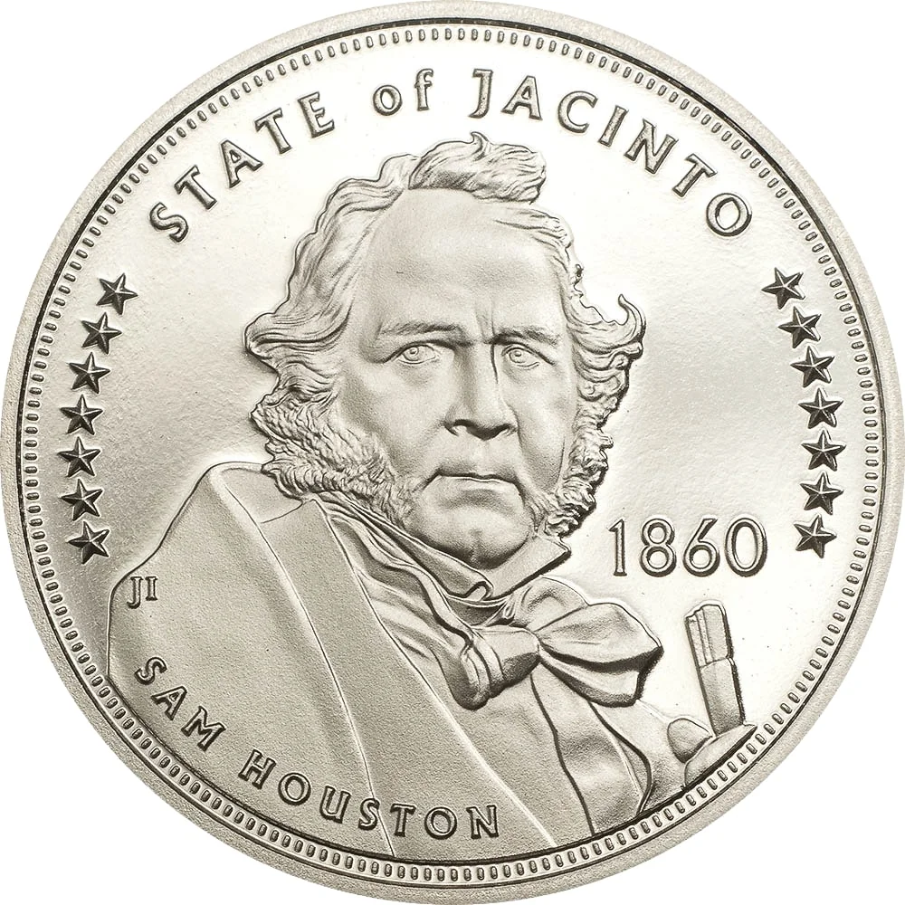 A statue of Queen Elizabeth II featuring the Texan victory at San Jacinto.