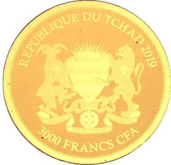 Chad's coat of arms with date above, value below.