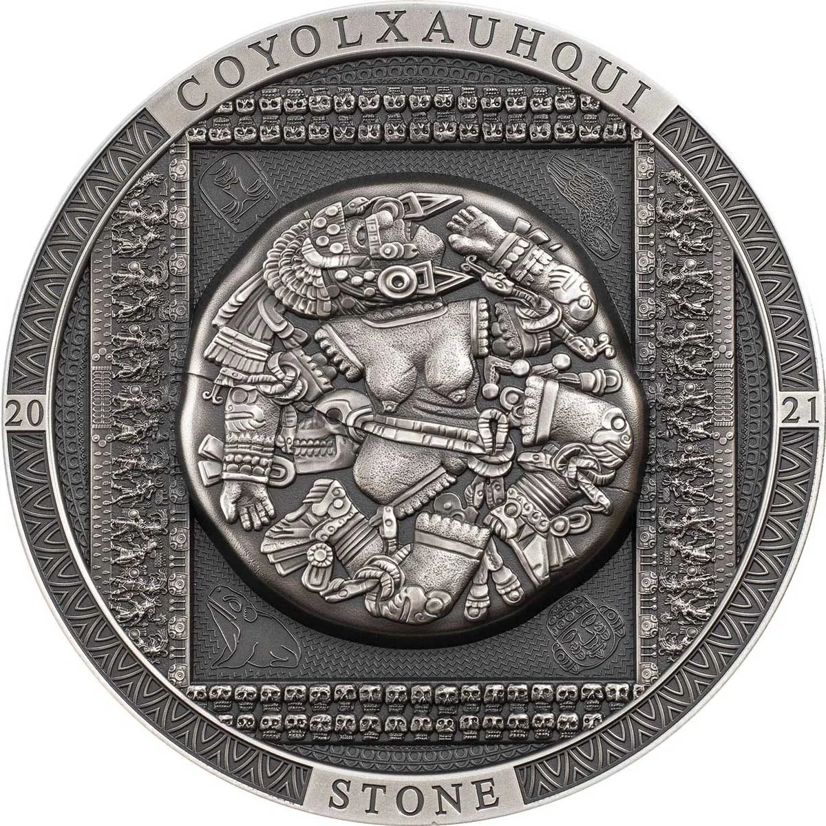 Coyolxauhqui Stone: a carved Aztec monolith depicting the dismembered moon goddess.