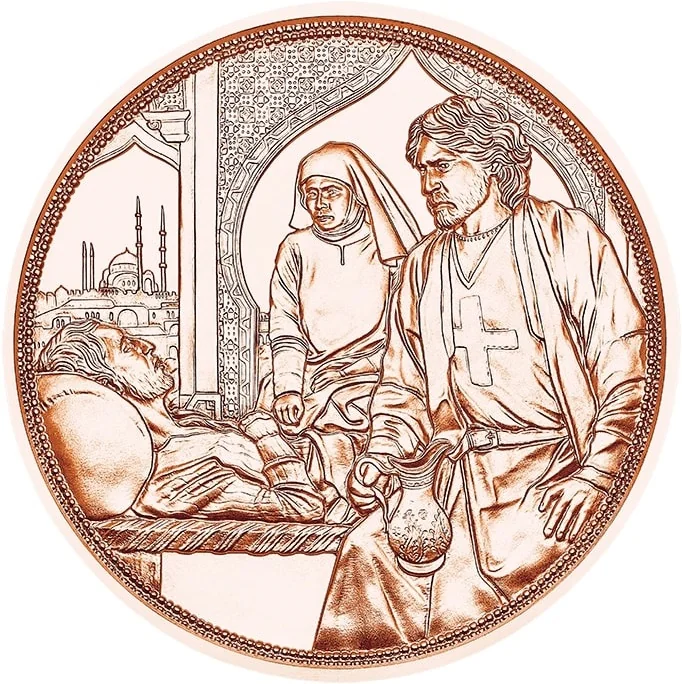A nurse tends to her bedridden brother, observed by a concerned Teutonic knight.