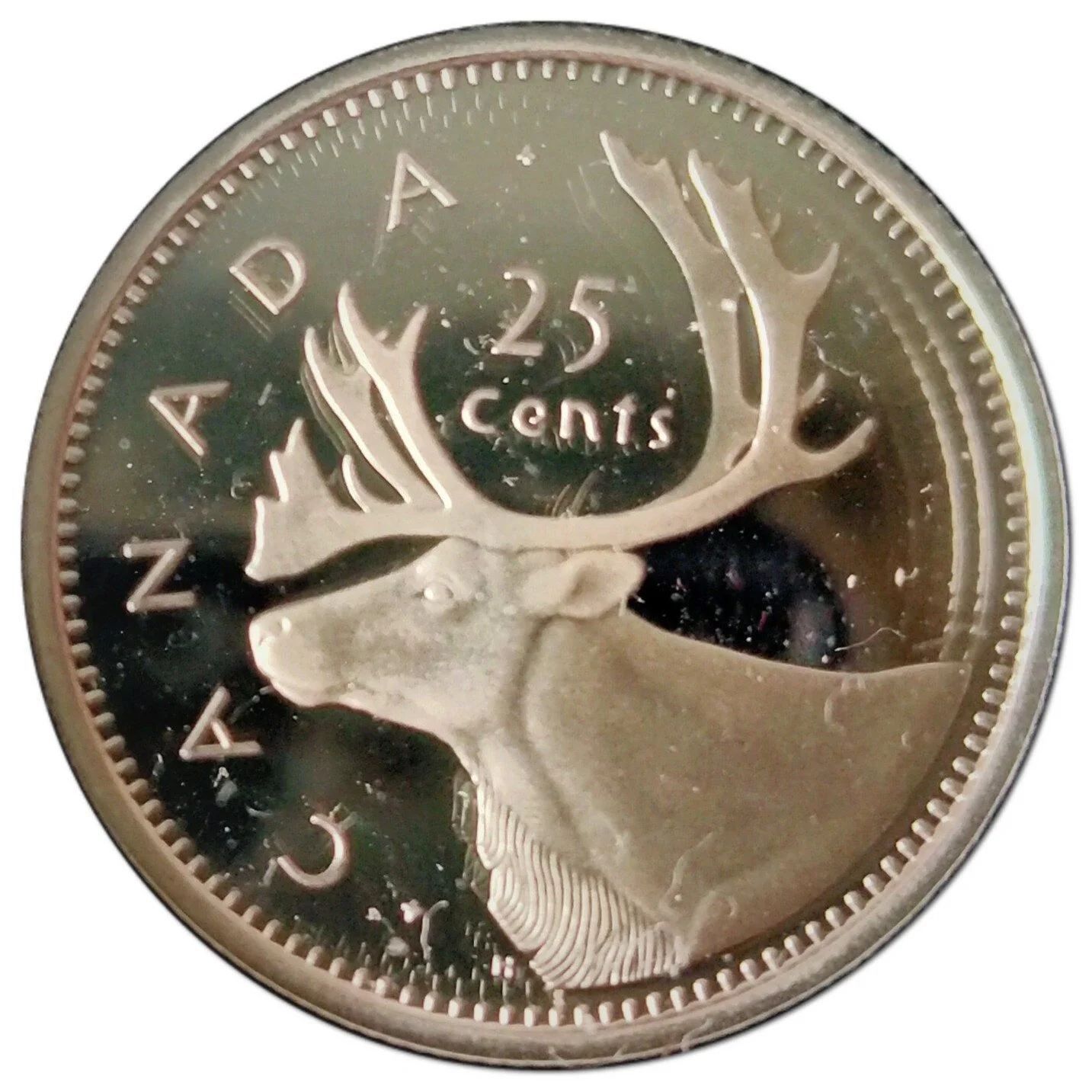 A caribou with its face value, encircled by "CANADA".