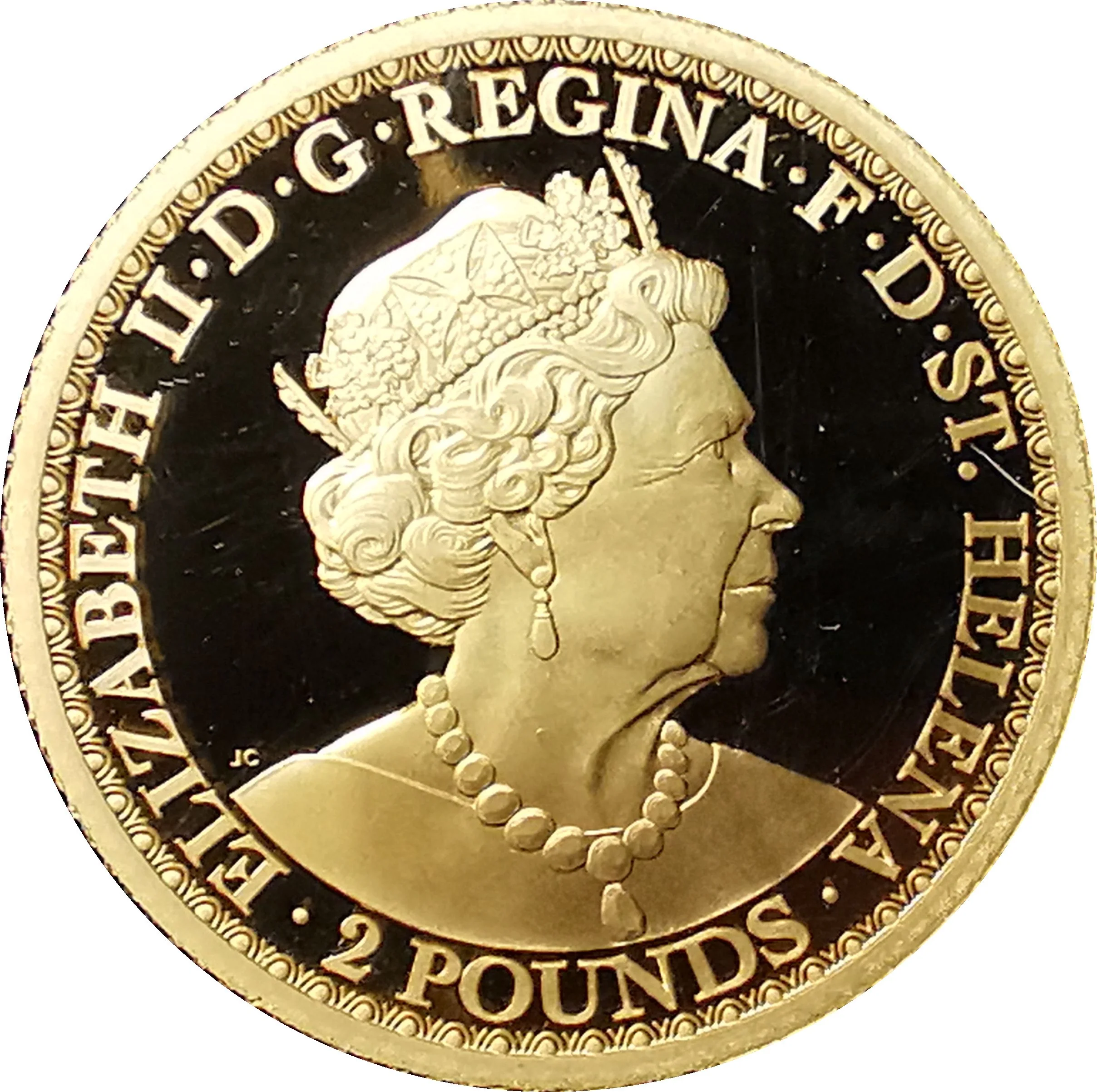 Inscription: ELIZABETH.II.D.G. REGINA. F. D. ST. HELENA. 2 POUNDS