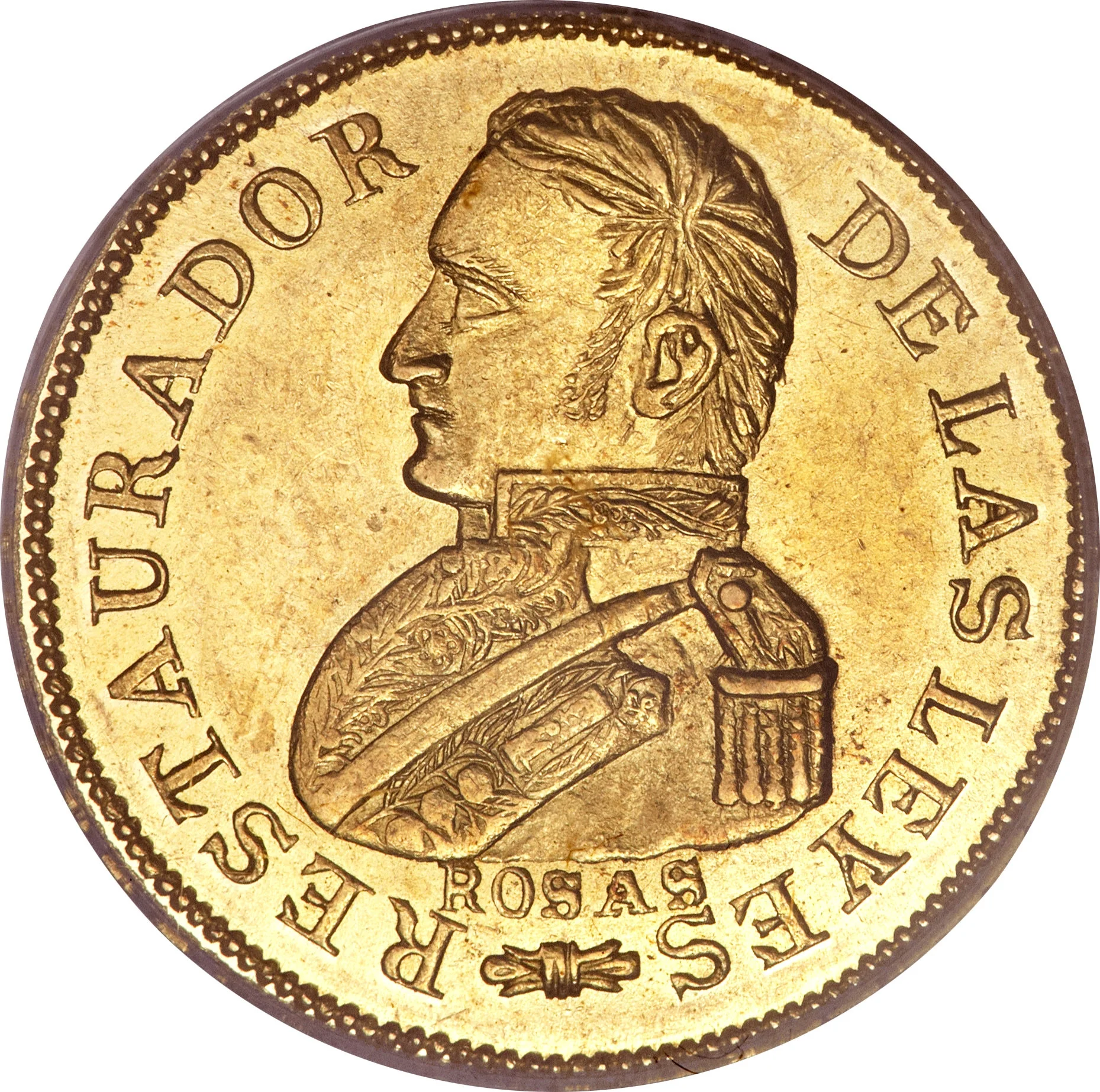 Uniformed bust of General Rosas left, legend encircling.