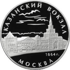 Front of Kazan Railway Station, with the year "1864" below. Around the rim: "КАЗАНСКИЙ ВОКЗАЛ" (THE KAZAN RAILWAY STATION) above, and "МОСКВА" (MOSCOW) below.