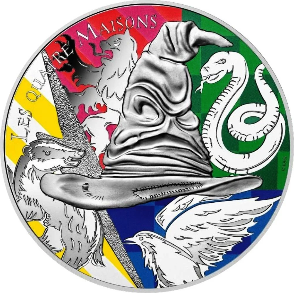 The Magic Sorting Hat centered, with the four Hogwarts House mascots—snake, eagle, badger, and lion—behind it on a colored field.