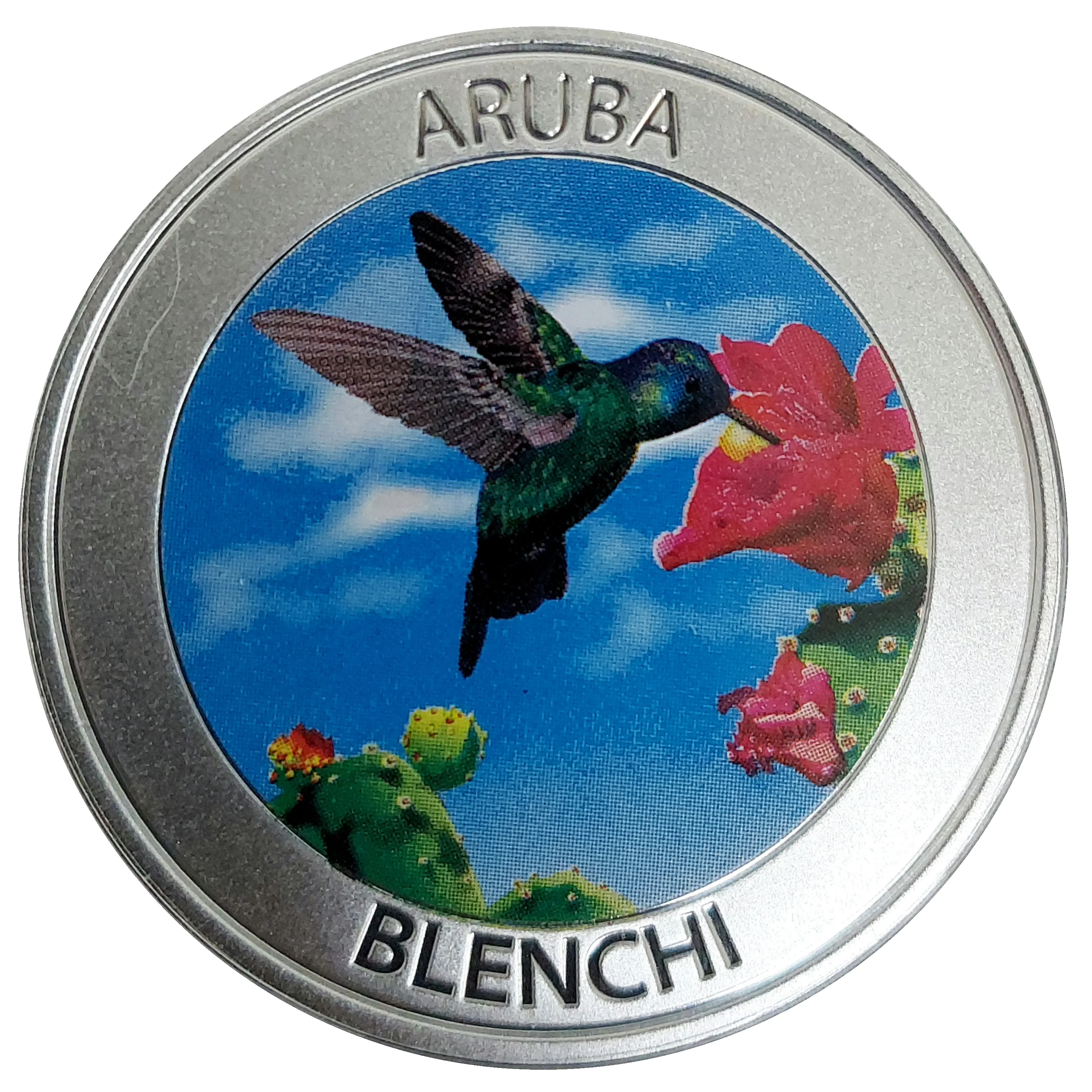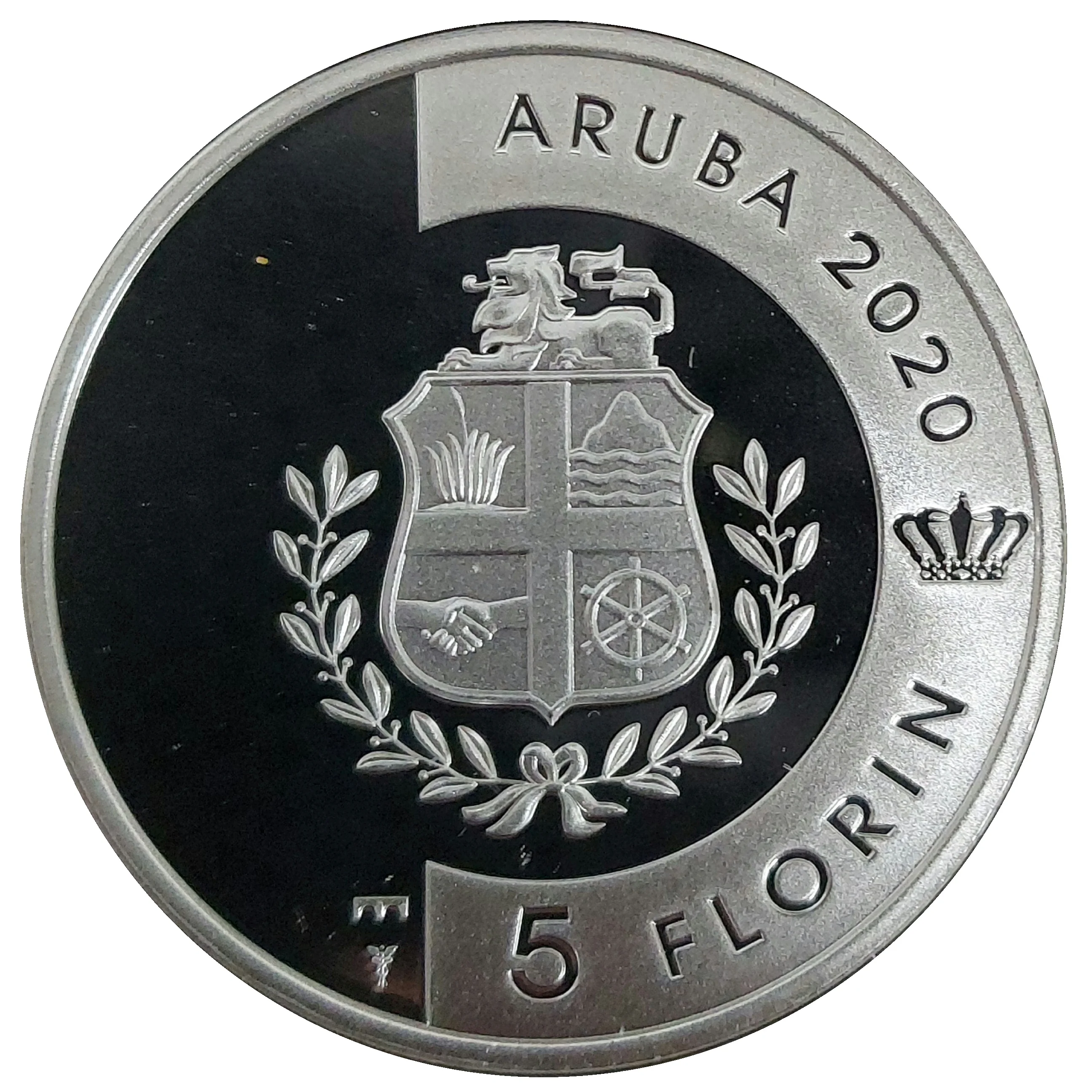 Aruba coat of arms with Dutch Royal crown, face value, and Dutch Royal Mint marks.