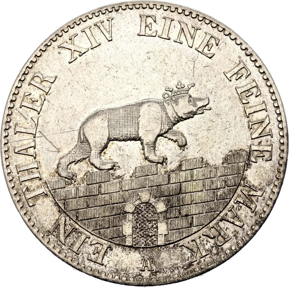 Inscription around rim. Crowned bear walking right on wall with gate. Mint mark below.