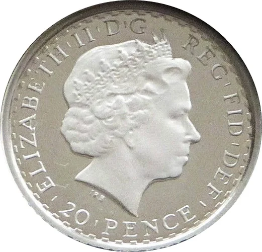 ELIZABETH|II|D|G REG|FID|DEF | 20|PENCE |