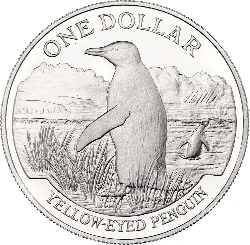Yellow-eyed penguin facing left on a shore; another faces away in the distance.