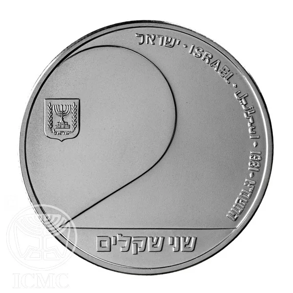 Face value (2); Israel State emblem, "Israel" in Hebrew, Arabic, and English, and mint year.