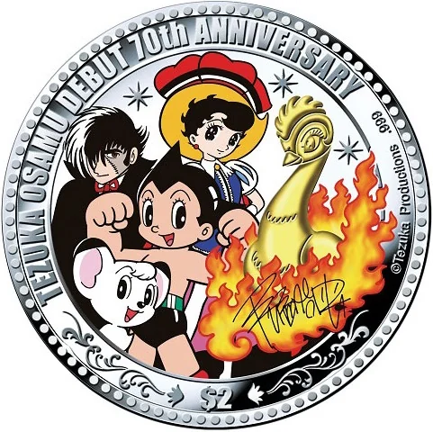 Osamu Tezuka characters: Astro Boy, Kimba, Princess Knight, Phoenix, and Black Jack. His signature is on the flame below Phoenix.