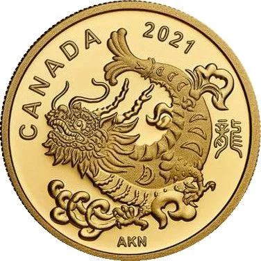 Albert Ng's reverse design draws from the legend of the Carp and the Dragon Gate and depictions of Chi Wen. It shows the transformed, dragon-headed carp above water symbols representing the obstacles overcome for success.