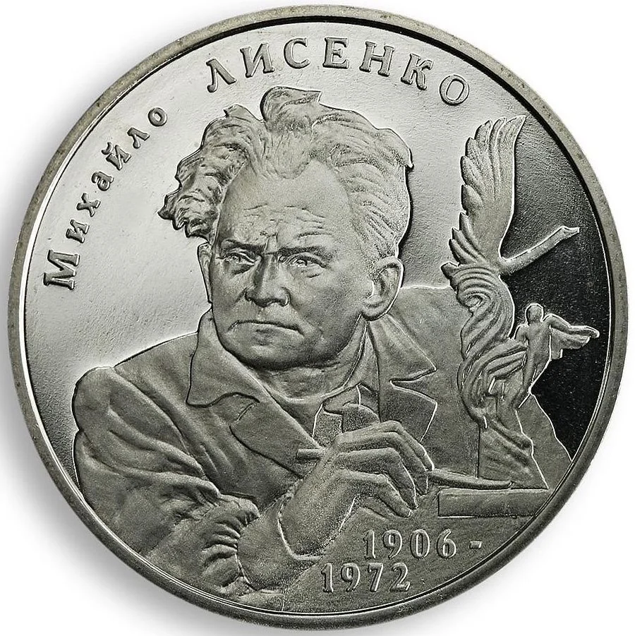 Portrait of Mykhailo Lysenko (1906–1972) with the name Михайло Лисенko inscribed above.