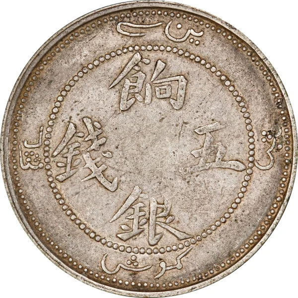In 1905, the currency situation in Sinkiang (Xinjiang) Province was a complex and fragmented reflection of its unique geopolitical position at the crossroads of Central Asia. The official currency was the Xinjiang Tael (Xinjiang liang), a silver ingot-based system inherited from the Qing dynasty. However, the province's vast territory and diverse trade networks meant that a multitude of other currencies circulated simultaneously. These included Chinese copper cash coins, Russian Rubles (both paper and silver, known locally as Yangk'a), and even British Indian Rupees from Kashmir, each valued by weight and purity in major trading hubs like Kashgar and Yining (Ghulja).