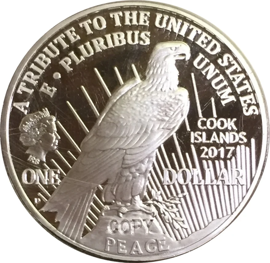 An American Eagle coin with a Cook Islands imprint, featuring Queen Elizabeth II.