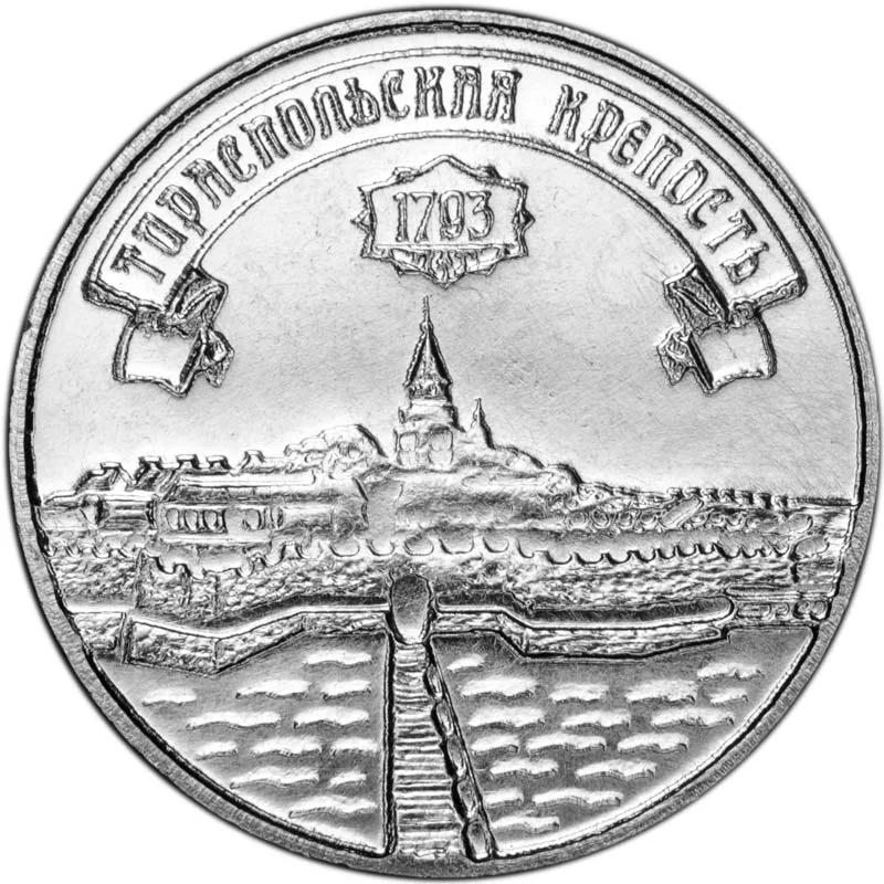Central: Tiraspol fortress image. Top: ribbon inscribed "TIRASPOL FORTRESS", a stylized rosette with foundation year "1793".