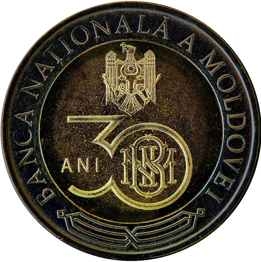- A stylized "30" frames the National Bank of Moldova logo and the word "ANI".