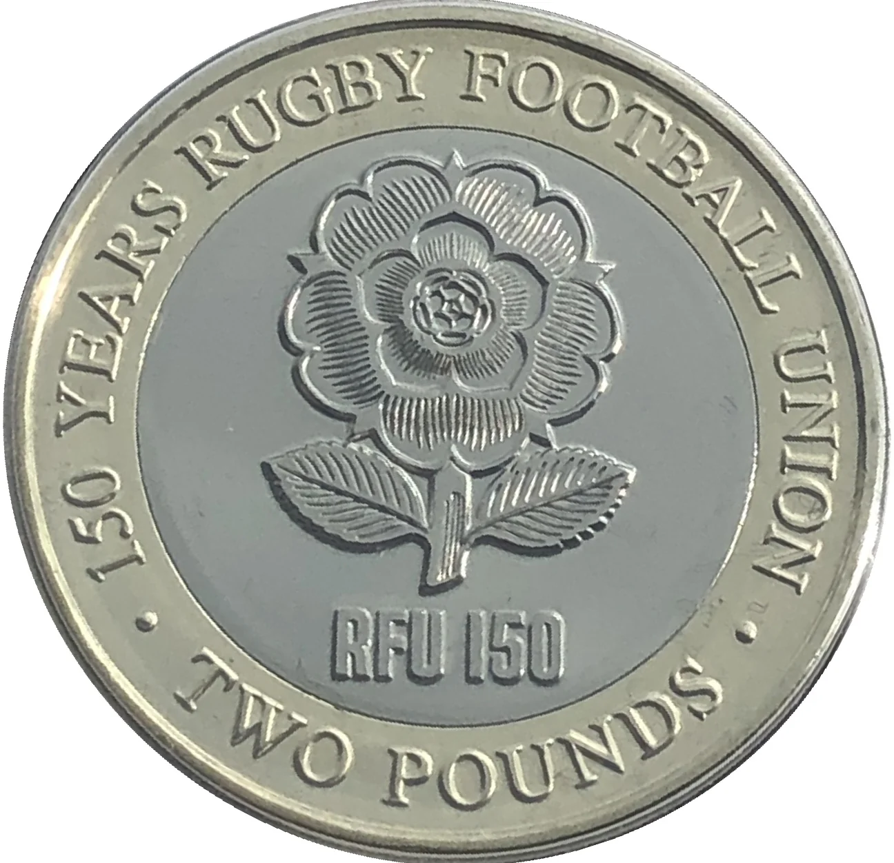150 YEARS RUGBY FOOTBALL UNION . TWO POUNDS .