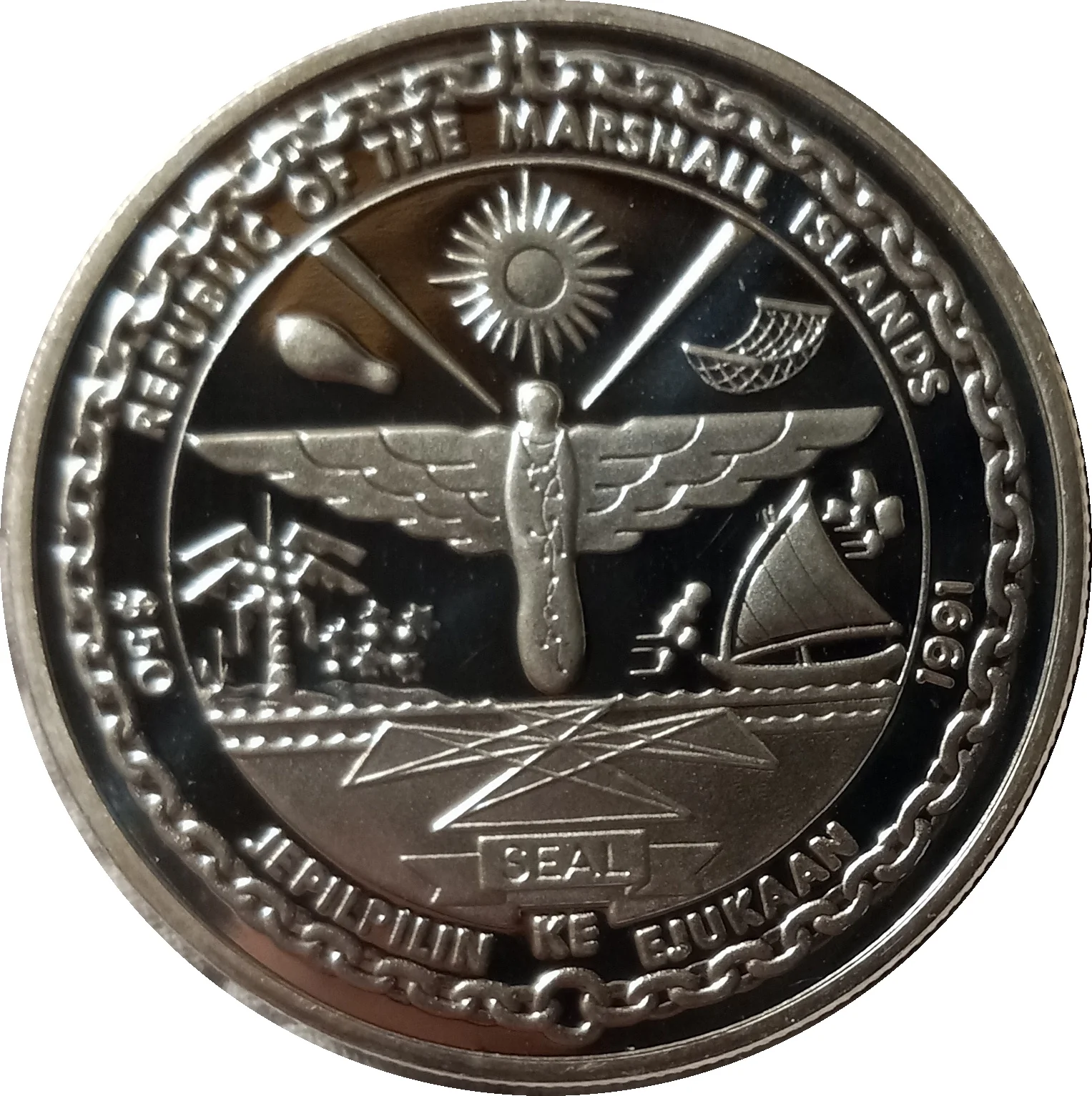 Eagle landing with arrows and olive branch, denomination below, date to the right.
