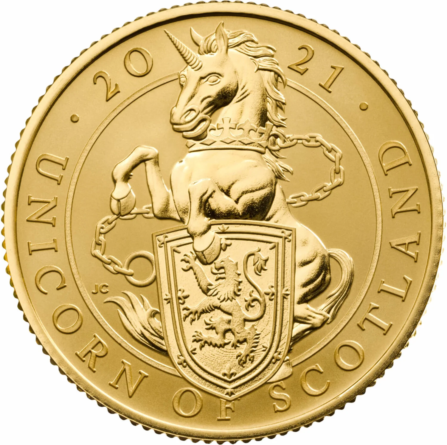 A unicorn crowned and chained, bearing the Royal Badge of Scotland.
