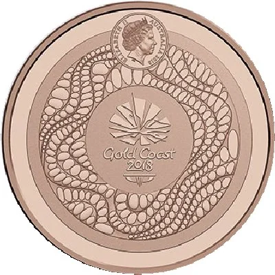 Miniature portrait of Queen Elizabeth II facing right, wearing the Girls of Great Britain and Ireland Tiara, on a design inspired by the 2018 Commonwealth Games medals.